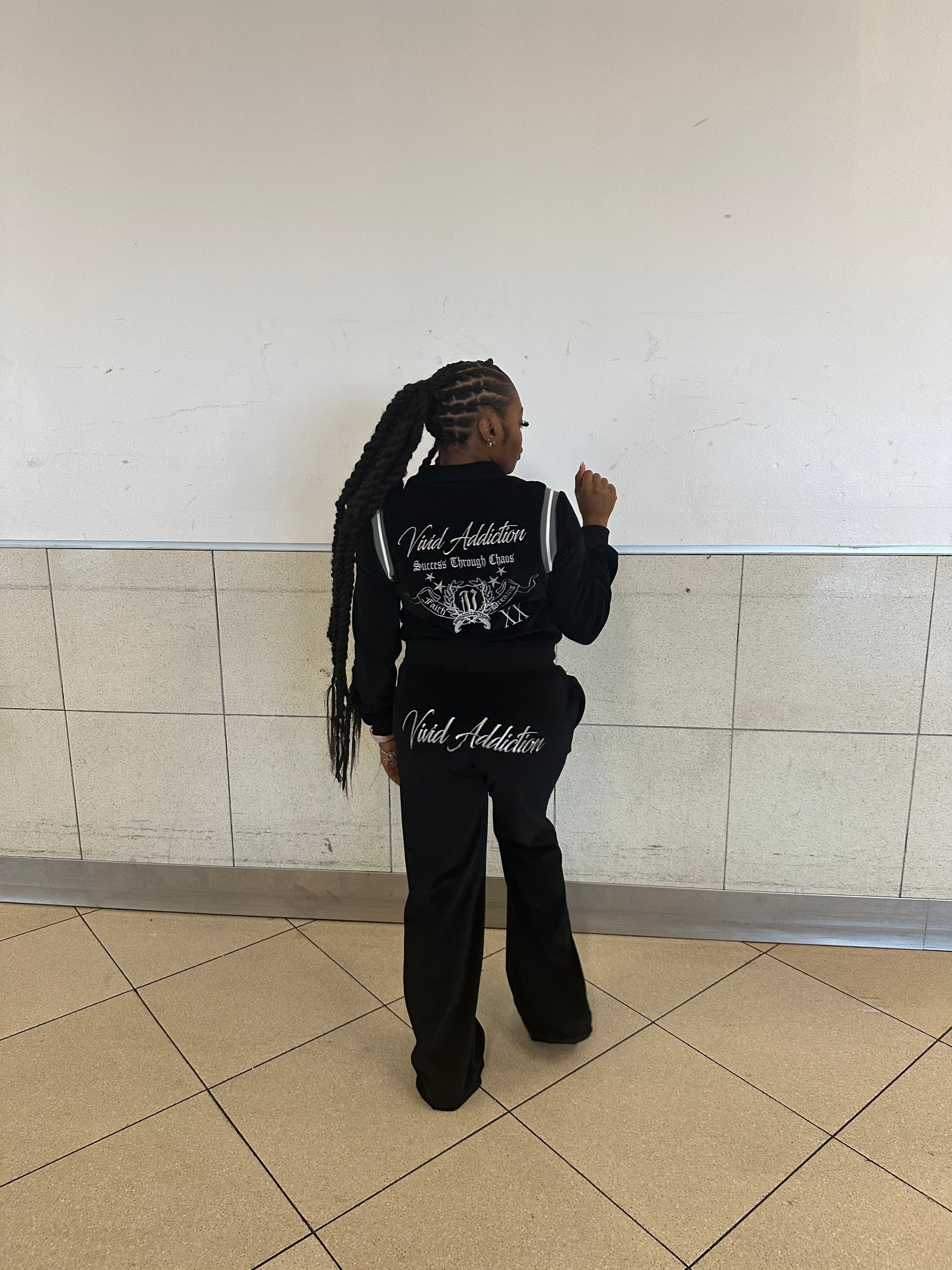 Timeless and confident. The black velour set features a soft, structured feel with a sleek silhouette that moves easily from casual to elevated. Clean lines and a smooth finish make this an essential you’ll reach for again and again.